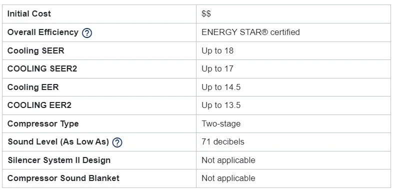 Up to 17 SEER2 for enhanced energy savings with enhanced comfort features.